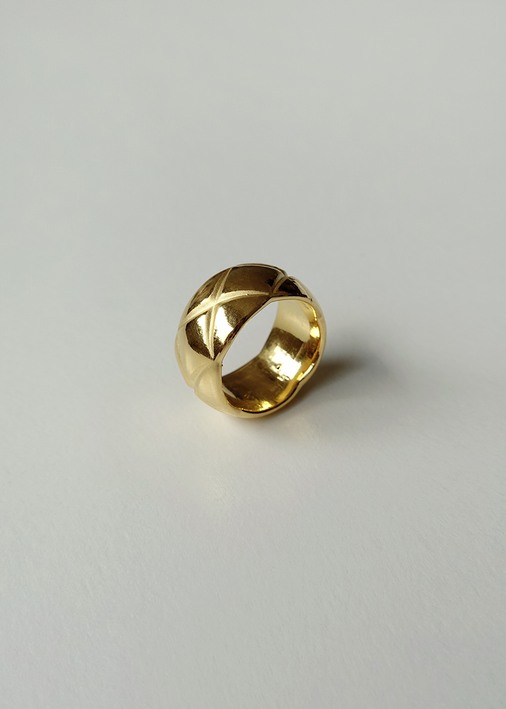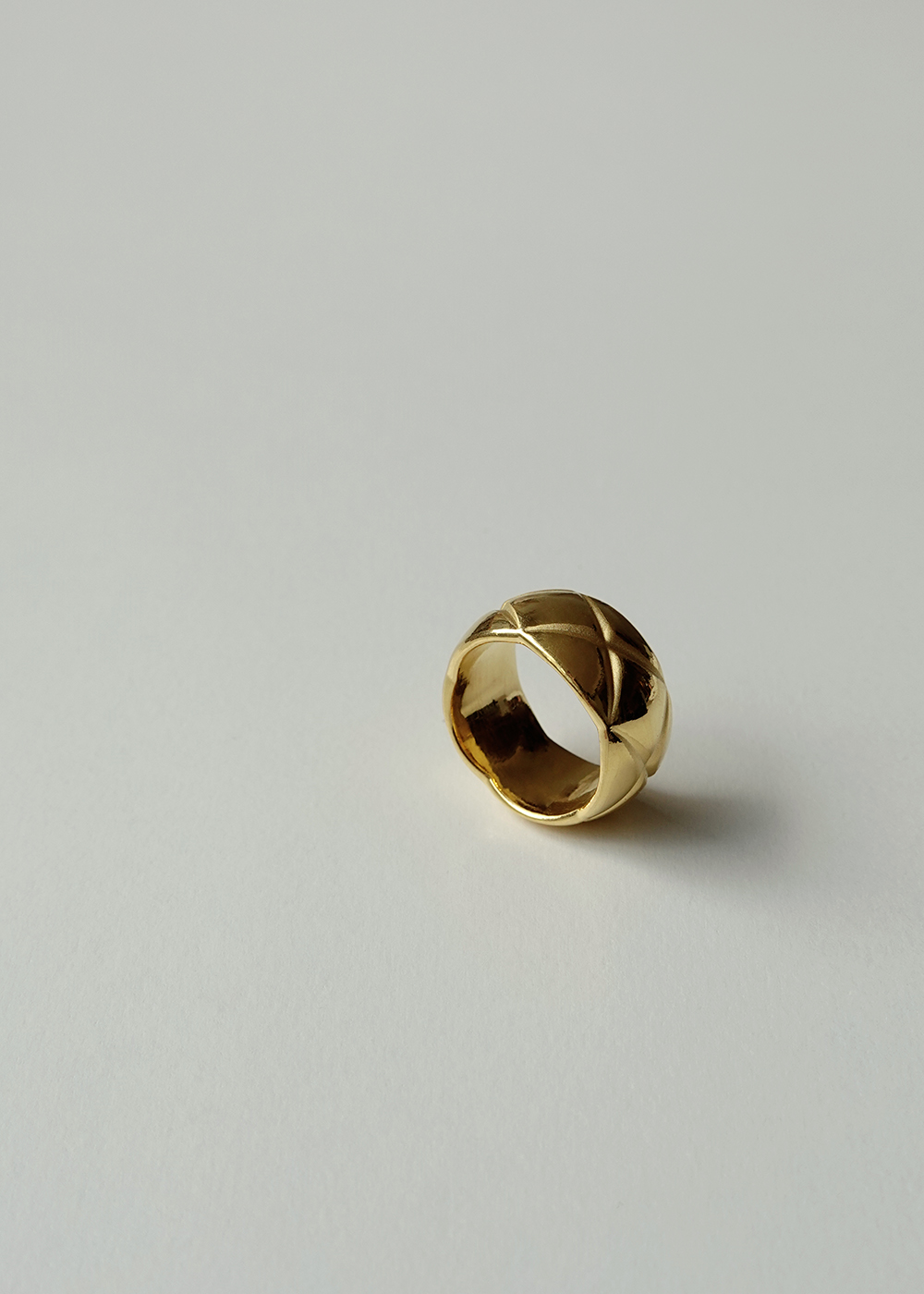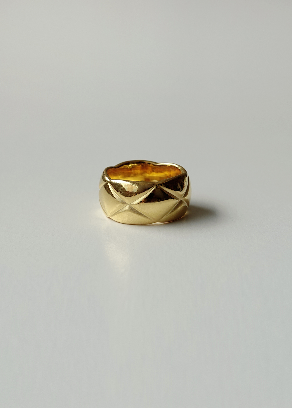 Lozenge Pattern Wide Band Golden Ring in 24K Gold 黃金菱格紋寬版戒指