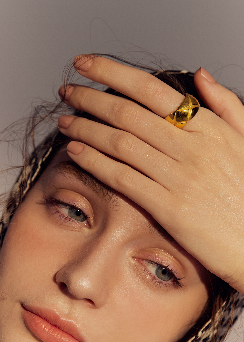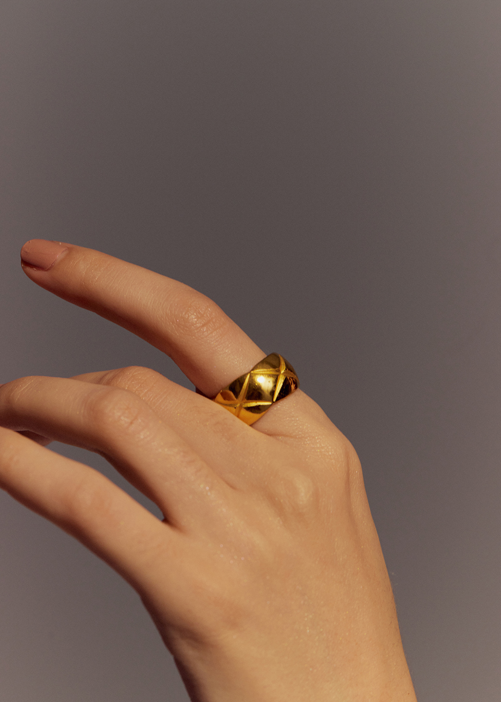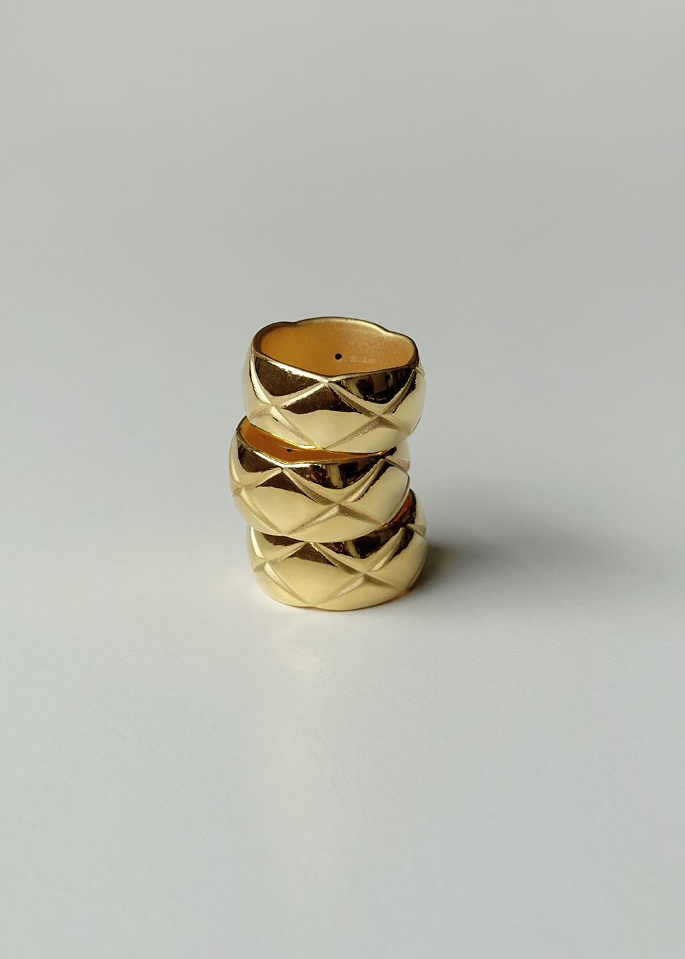 Lozenge Pattern Wide Band Golden Ring in 24K Gold 黃金菱格紋寬版戒指