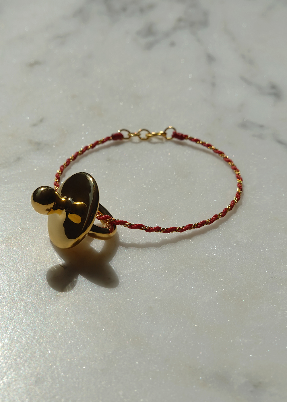 Baby Mini Pacifier Bracelet in 24K Gold 紅繩迷你金奶嘴手鍊 (預購)