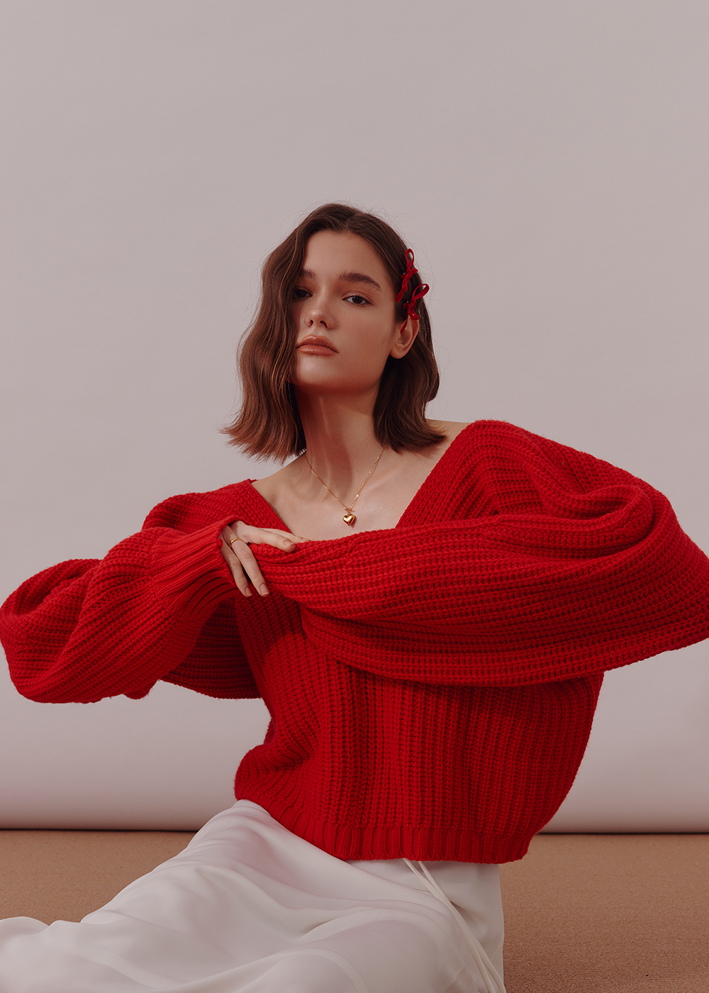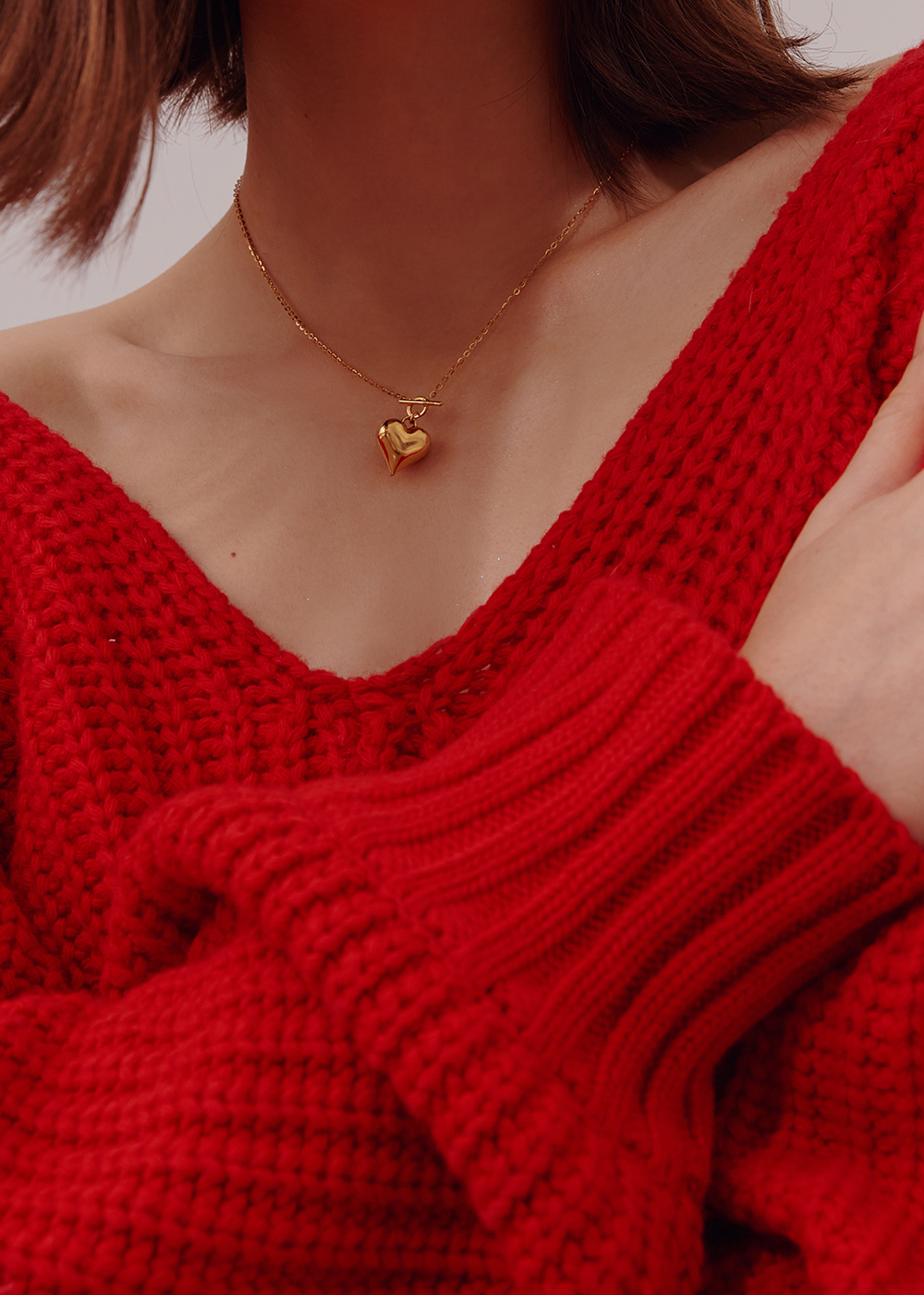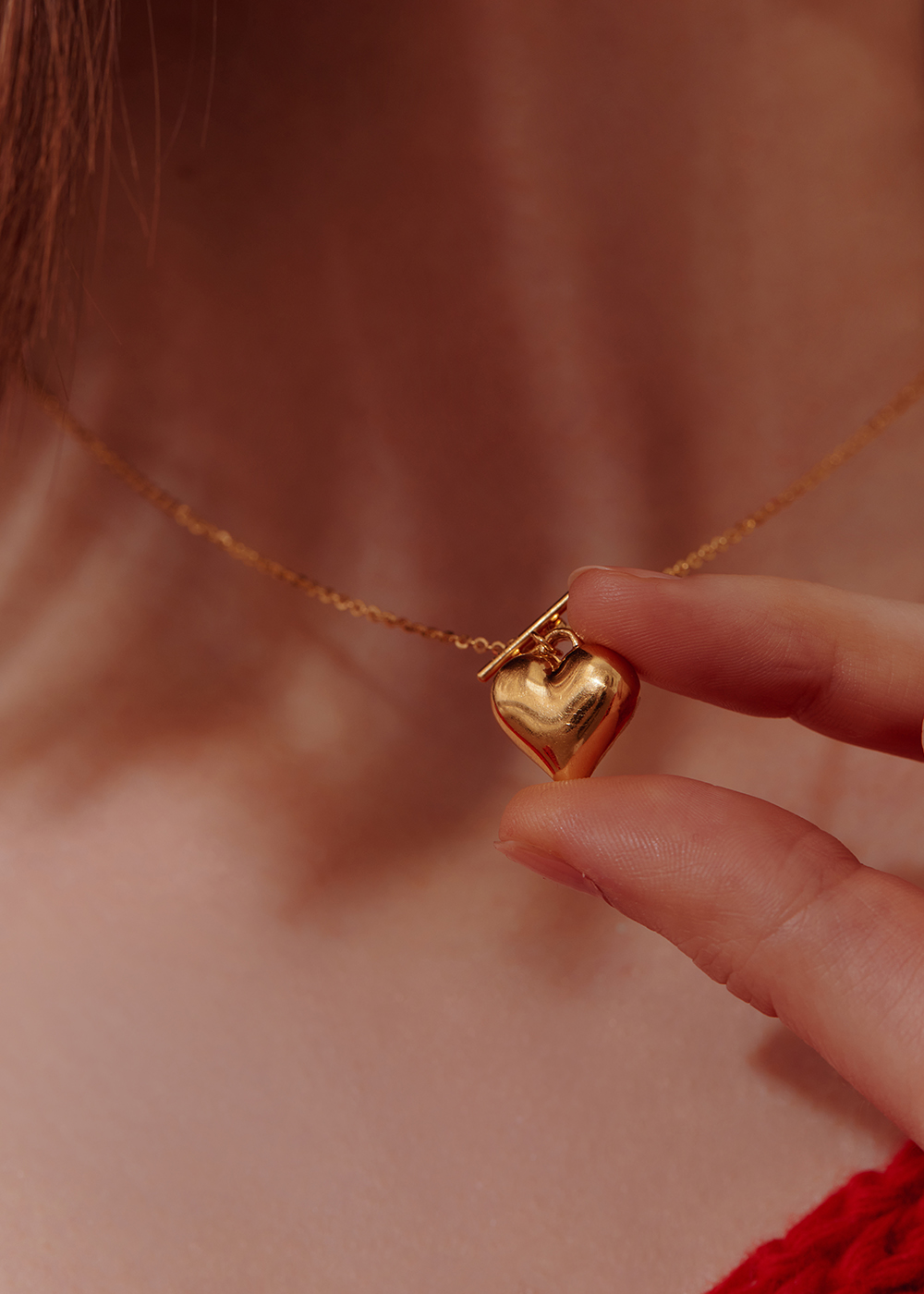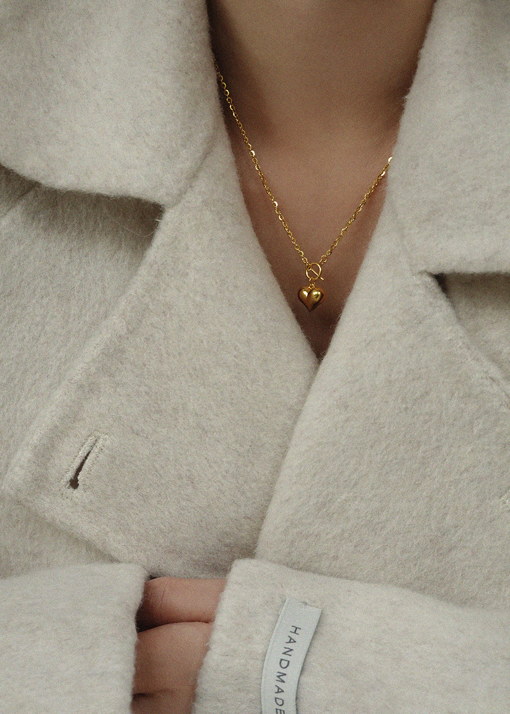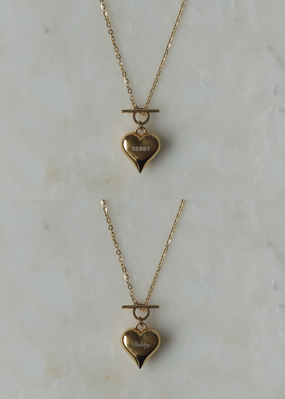 項鍊為T釦設計