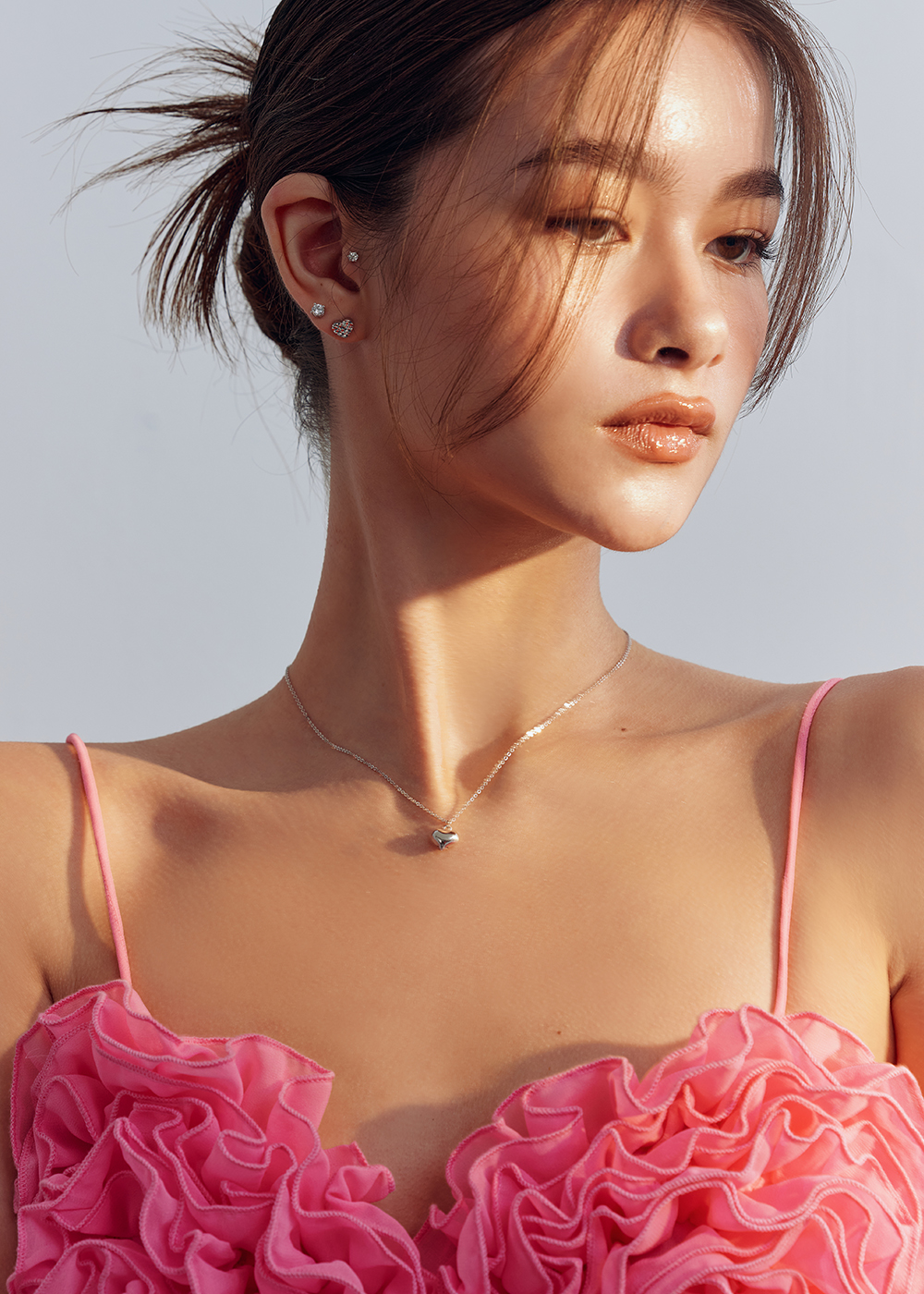Heart Fluffy Pancake :Platinum Stud Earrings
