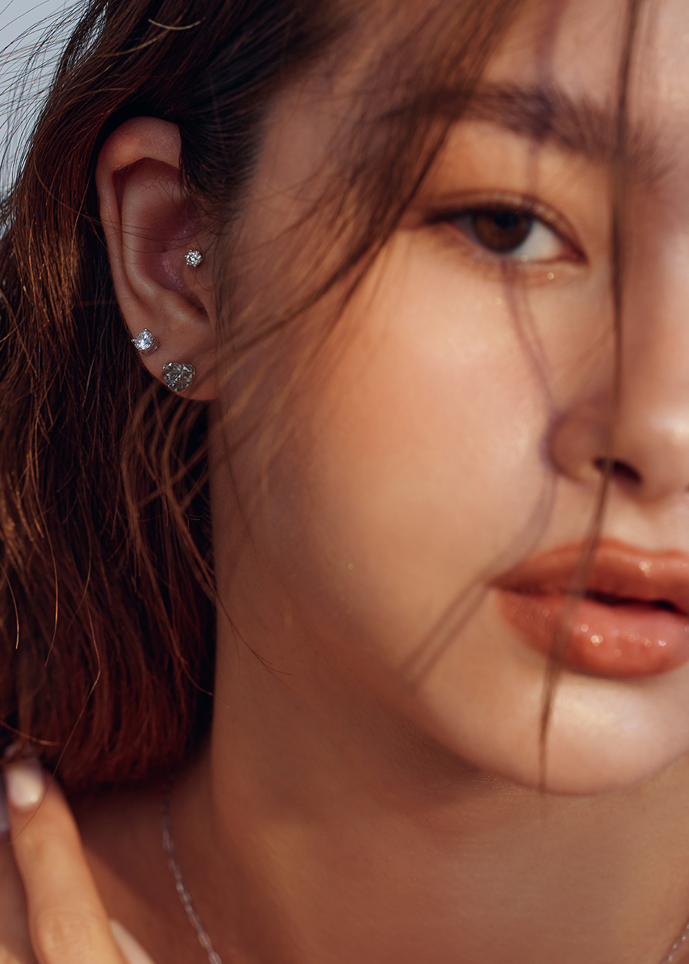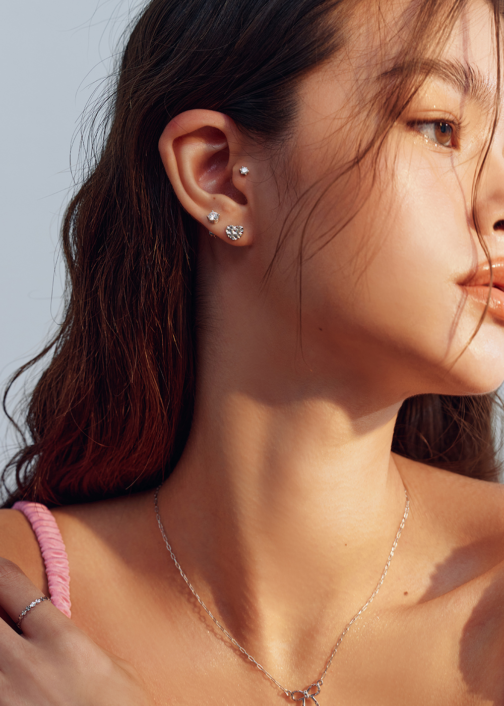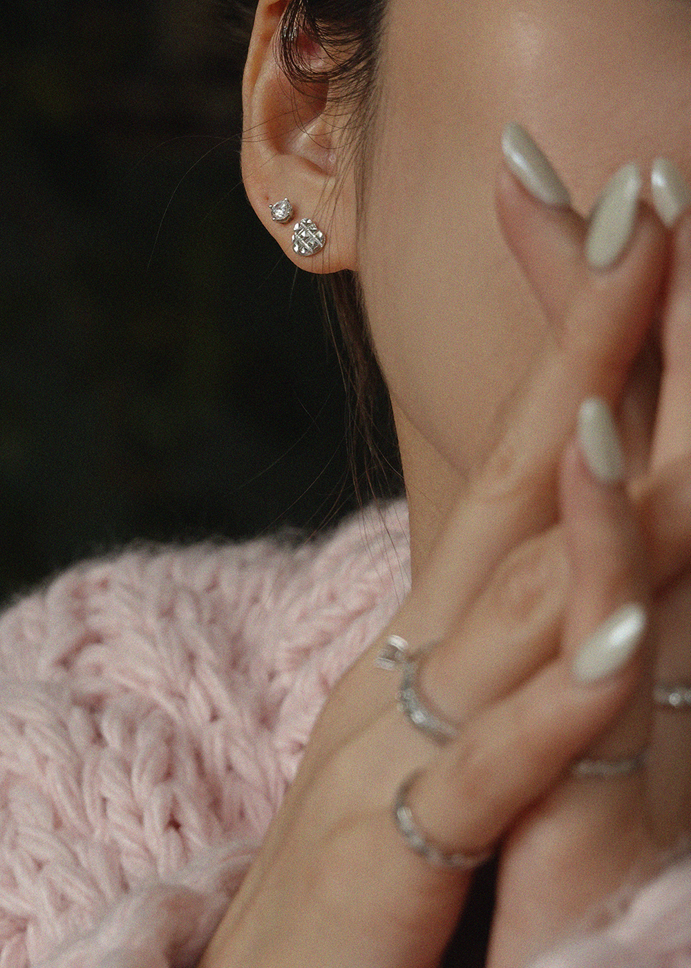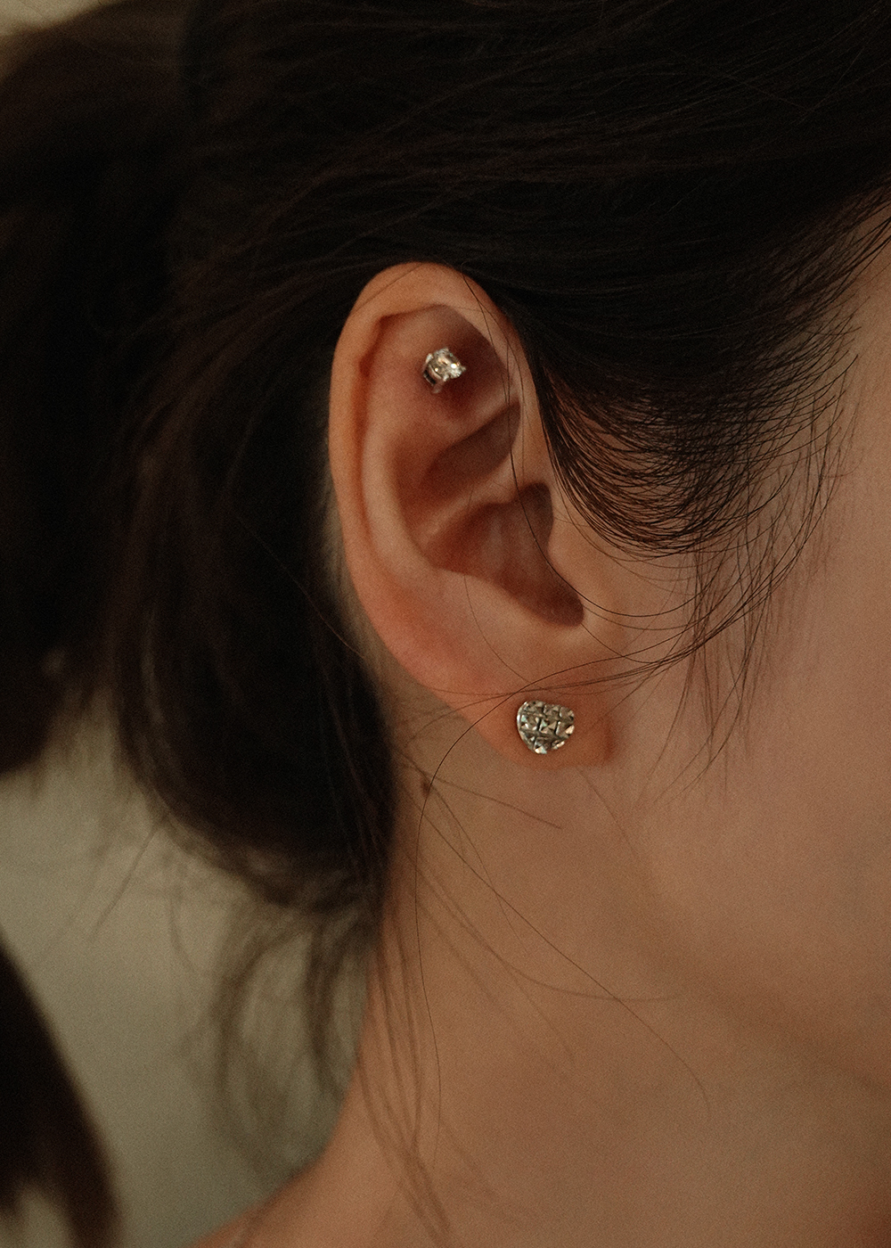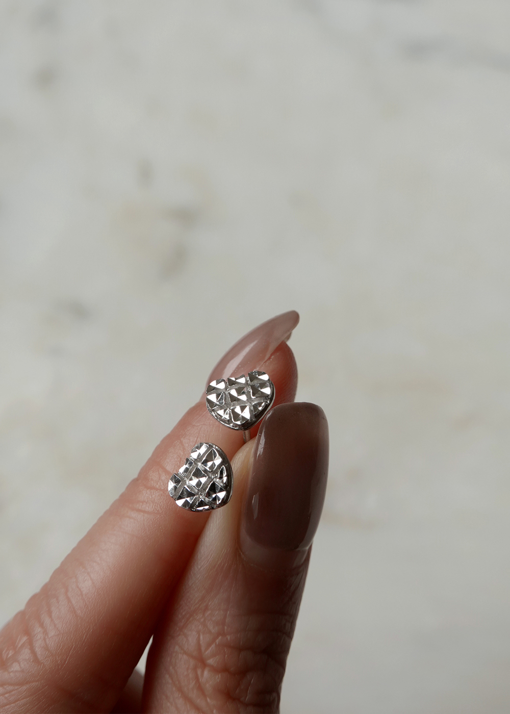 Heart Crepe :Platinum Stud Earring