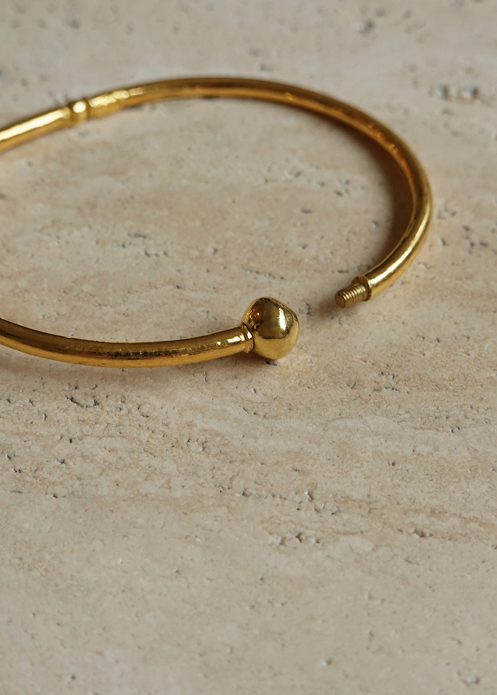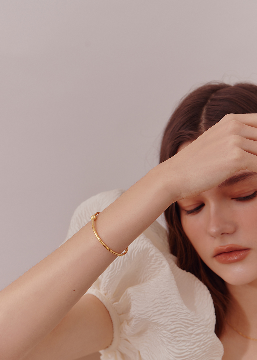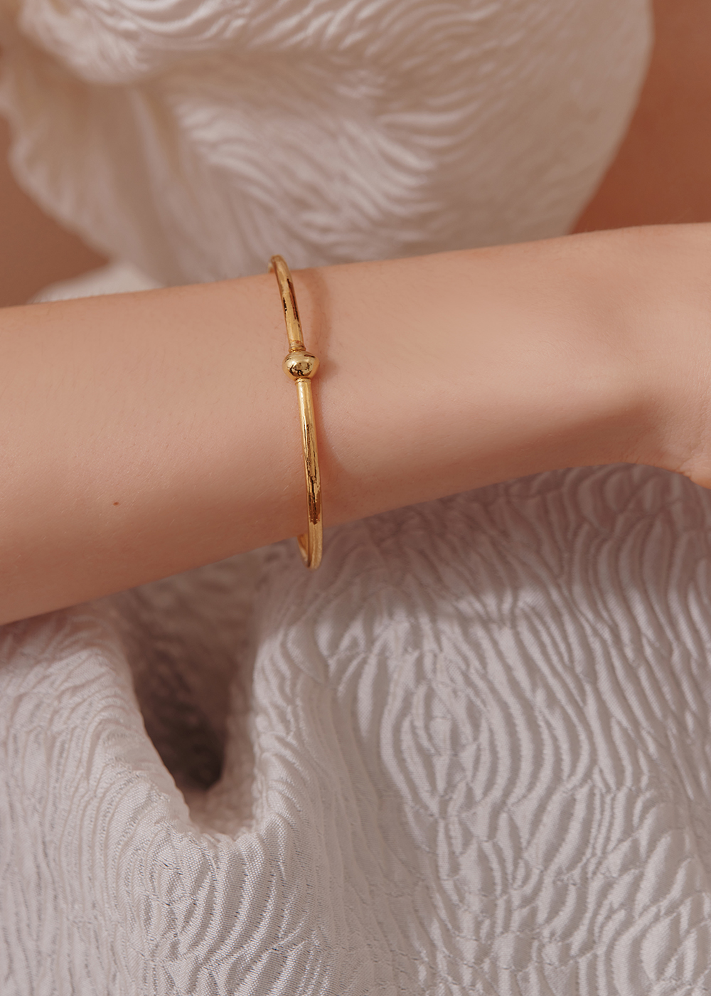 此商品圓形釦頭部分為旋轉螺絲,因黃金質地軟,製作過程為了增加硬度會降低黃金成色。