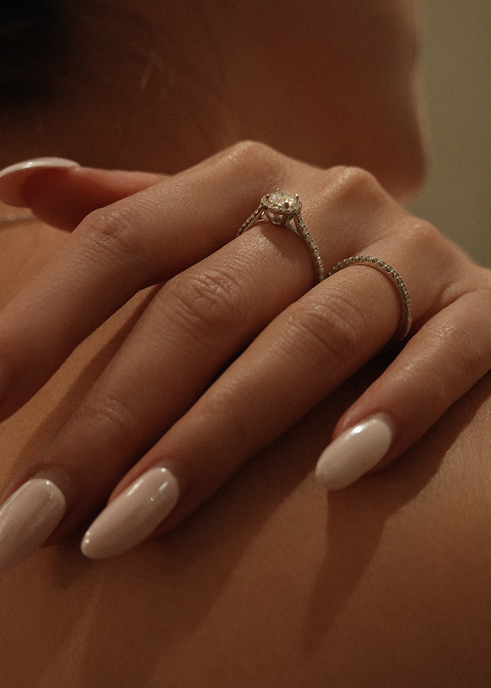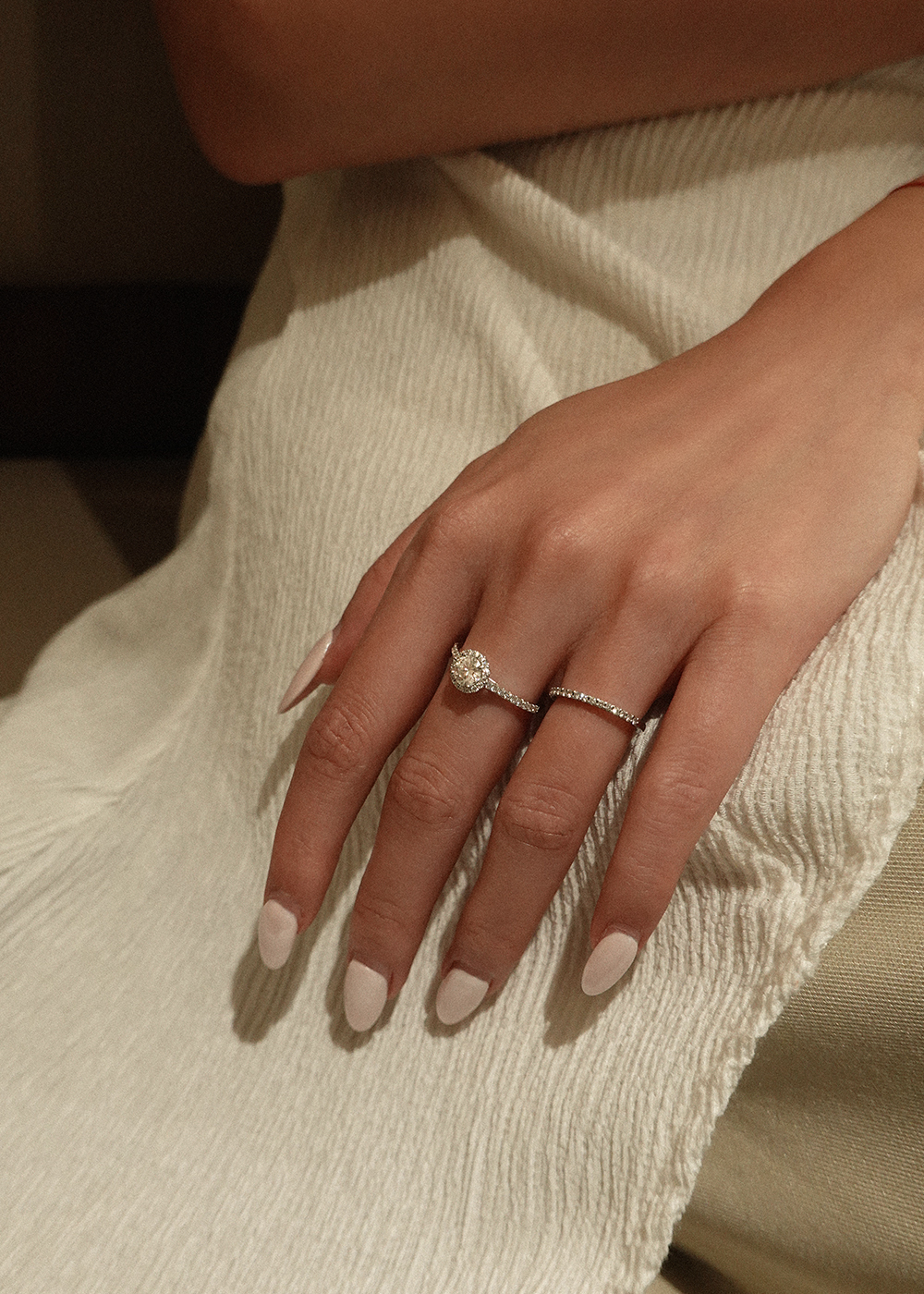 戒台鉑金製作。24顆鑽石,鑽石共約0.19ct.